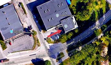 Koulutustilaan kulku etupihan parkkipaikalta, pääovesta sisään (portaikon luota).