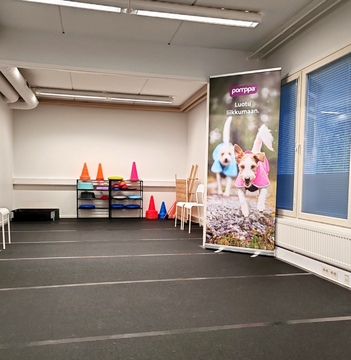 - koulutustila matotettu pitävällä kumimatolla, ei luista tassut